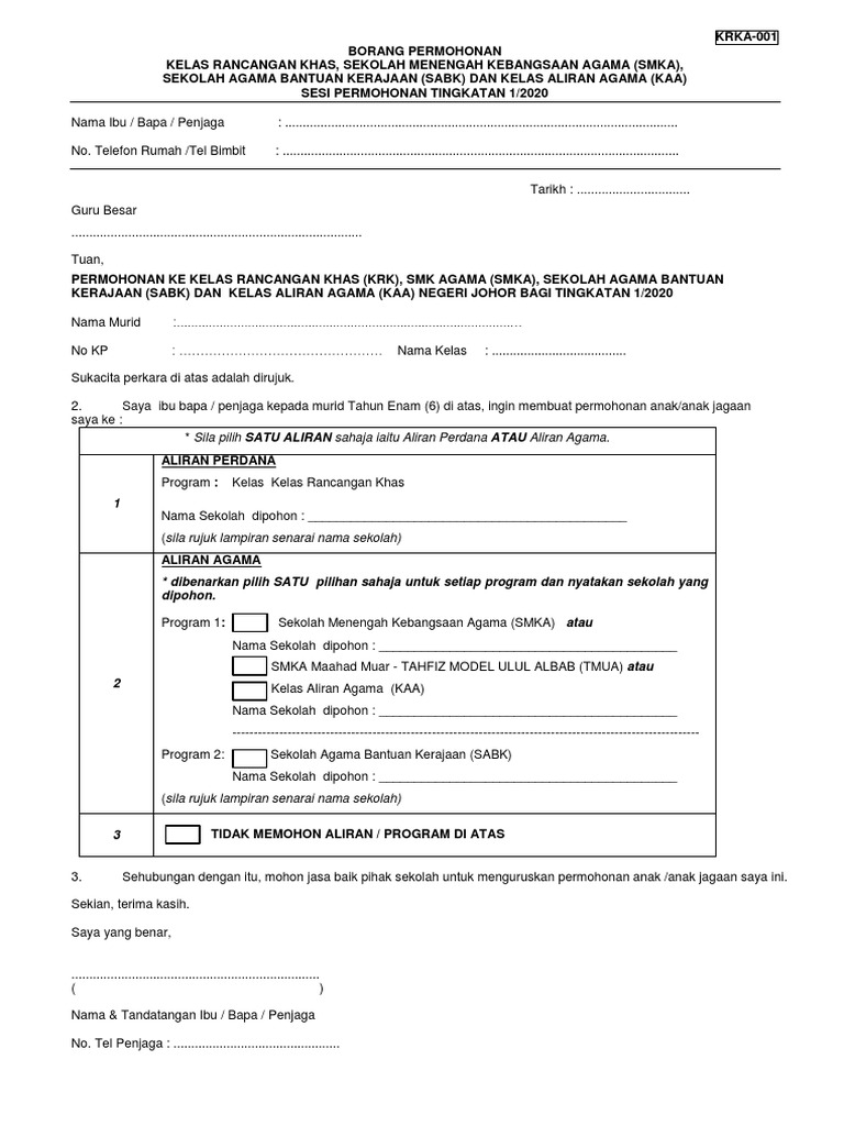 Permohonan Sekolah Kawalan 2022 Smka Kaa Sabk Krk Tingkatan 1